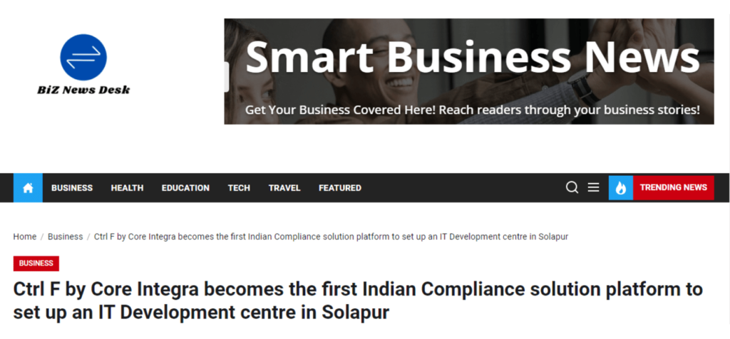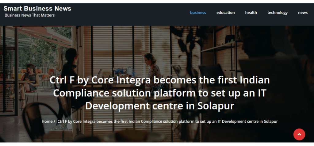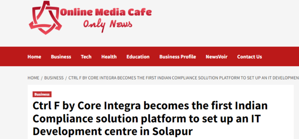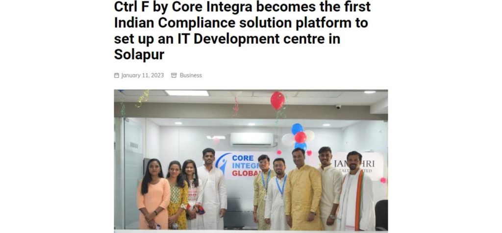 Ctrl F by Core Integra becomes the first Indian Compliance solution platform to set up an IT Development centre in Solapur