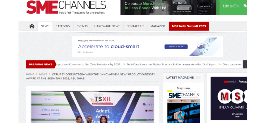 Ctrl F by Core Integra wins the “Innovative & New” product category award at the ISODA TSXII 2023 at Abu Dhabi