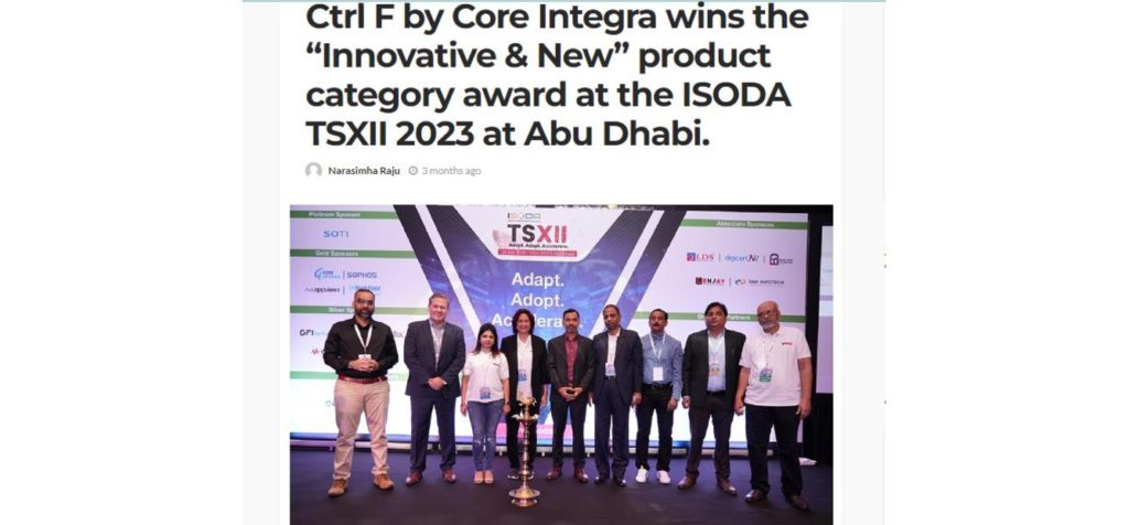 Ctrl F by Core Integra wins the “Innovative & New” product category award at the ISODA TSXII 2023 at Abu Dhabi.